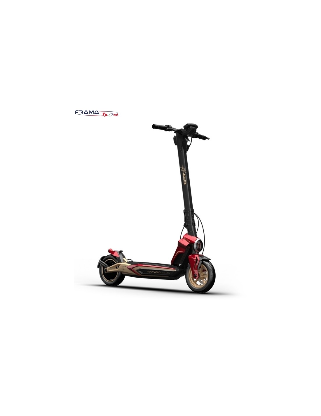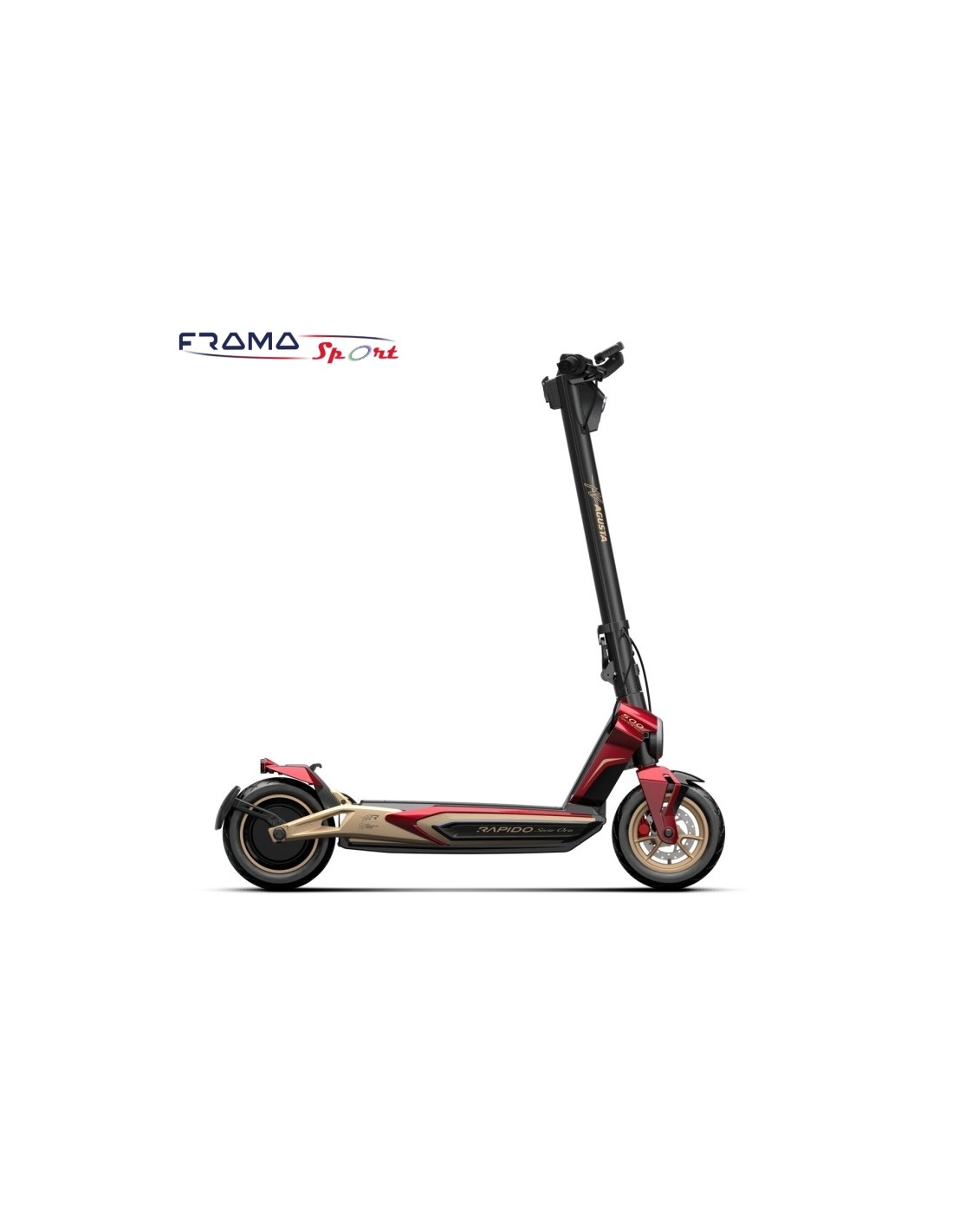 Rapido Serie Oro è un kikscooter elettrico con un telaio in Magnesio, ruote tubeless anteriori e posteriori, doppio freno a disco, motore da 500W che genera una coppia di 24Nm e con una autonomia di oltre 50 km. Rapido Serie Oro ha 4 livelli di potrenza: Pedonale, Eco, Comfort and Sport+ e un display di 4 inch LCD che funziona come pannello di controllo e tachimetro.